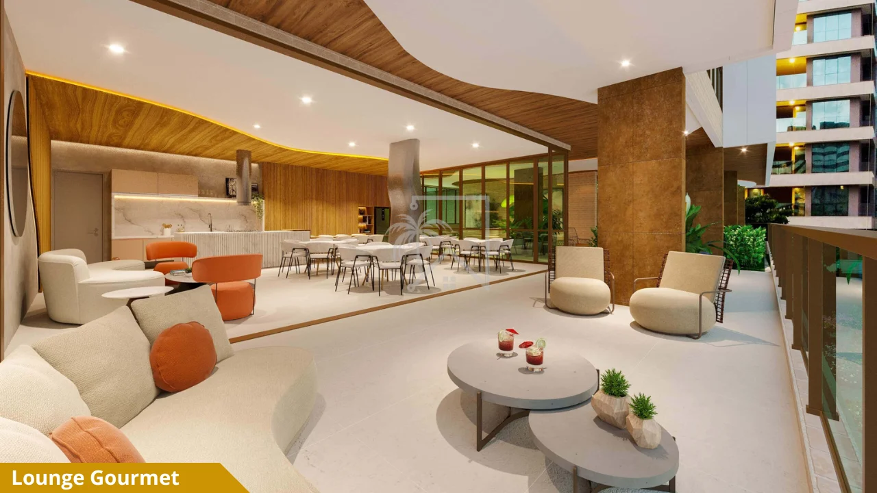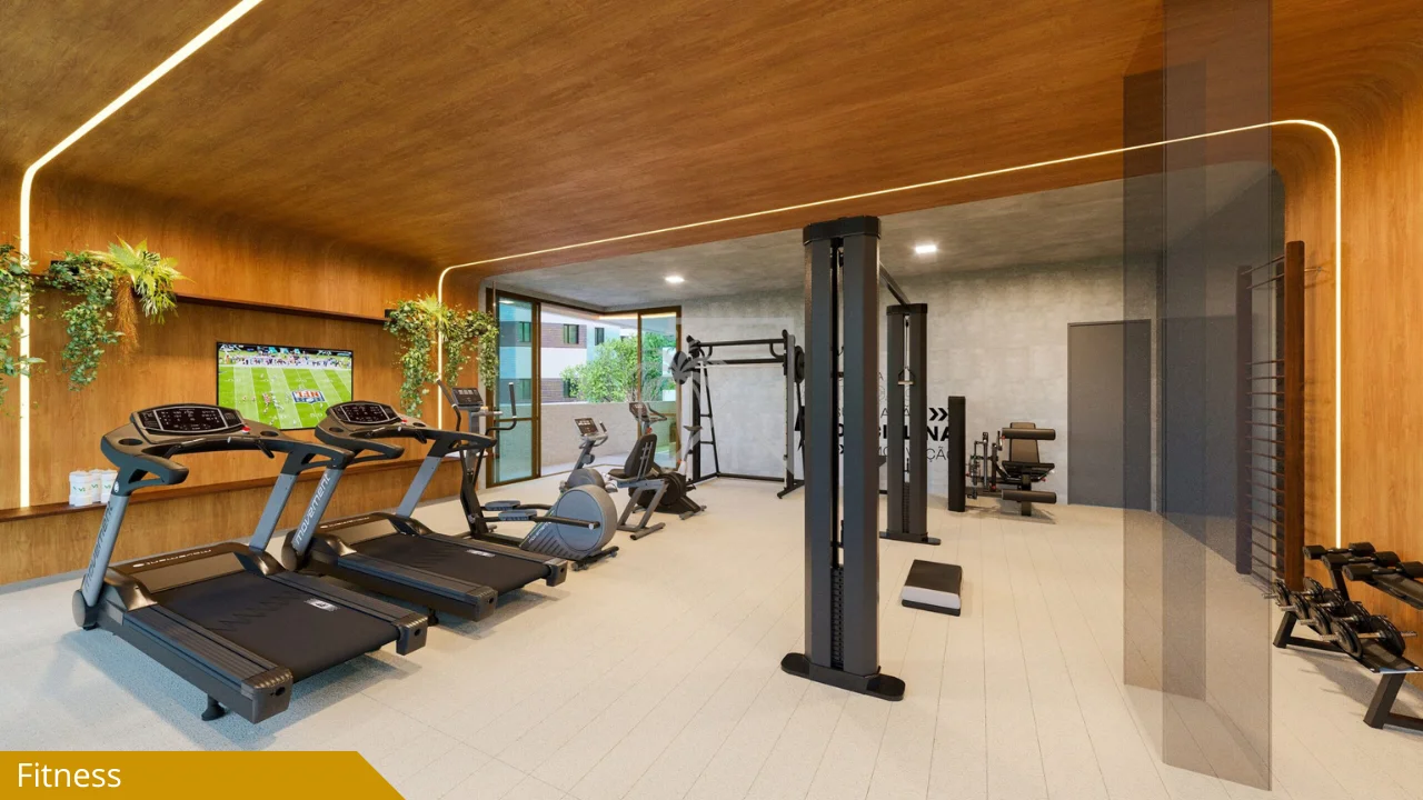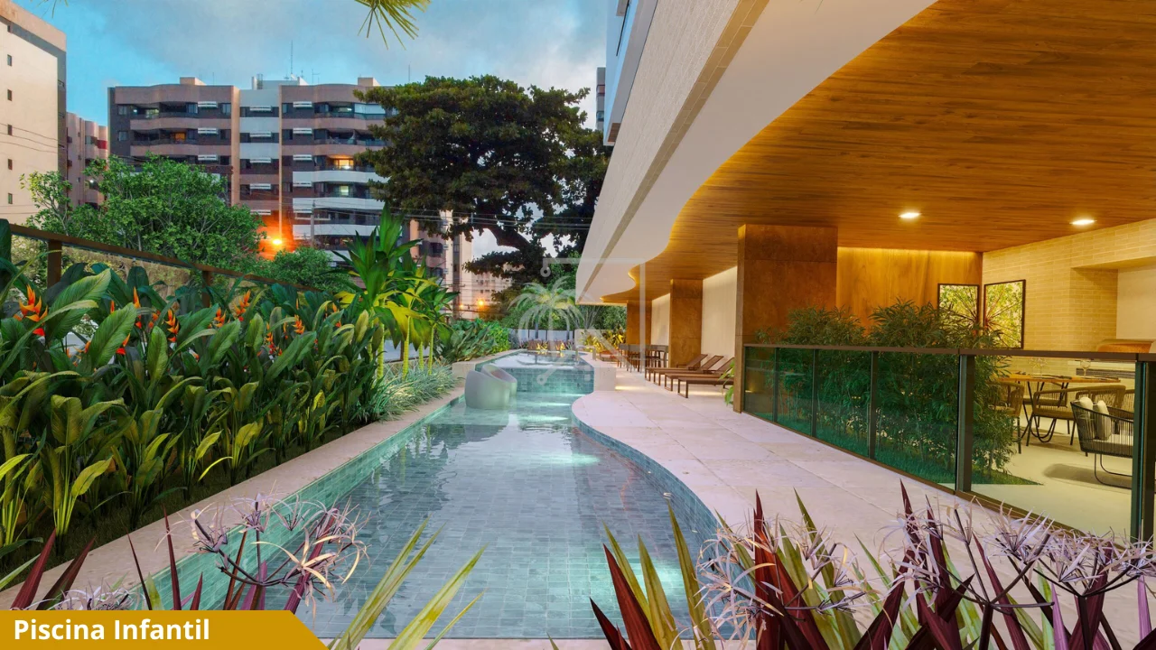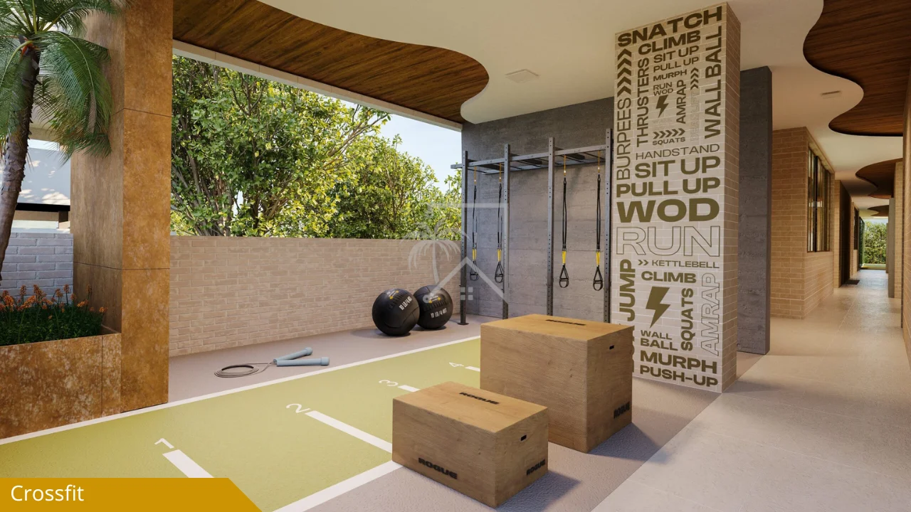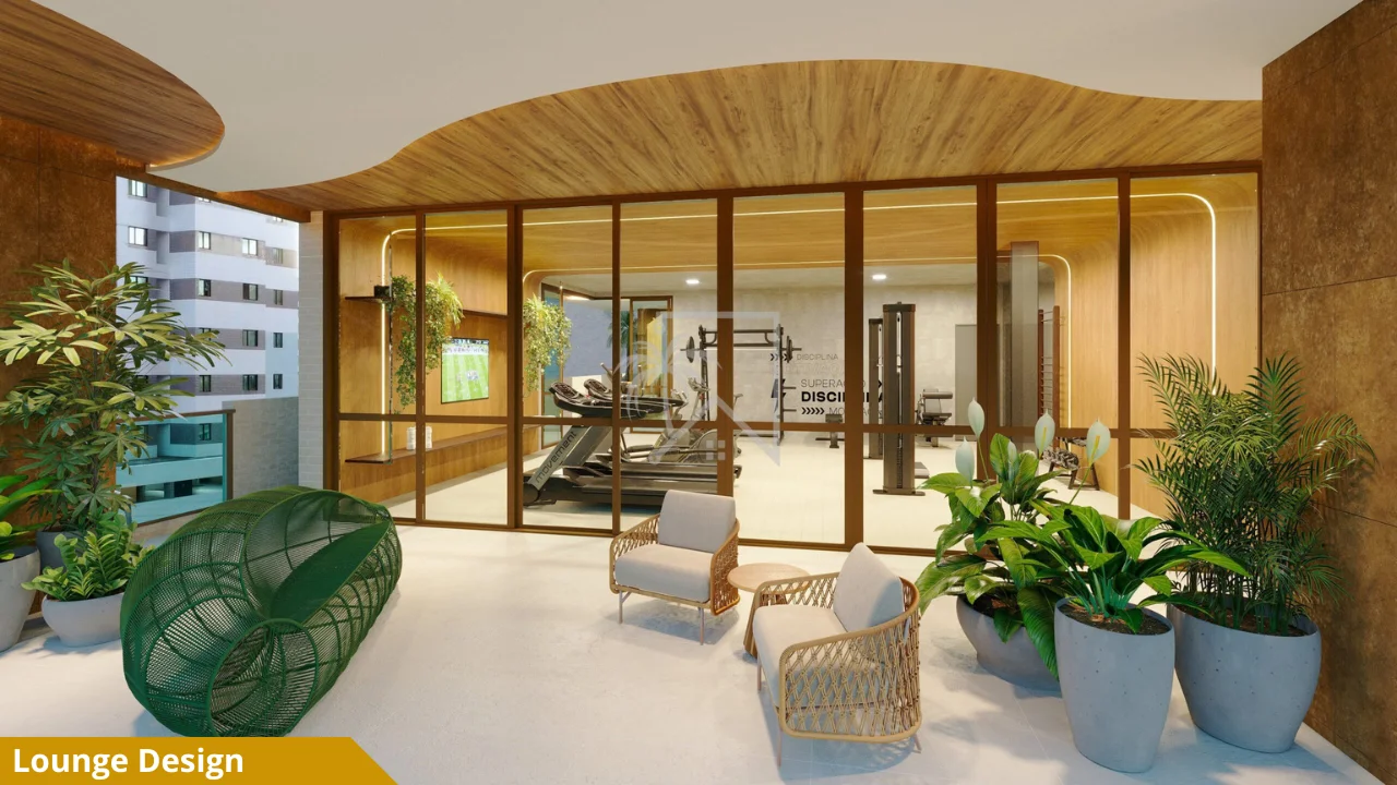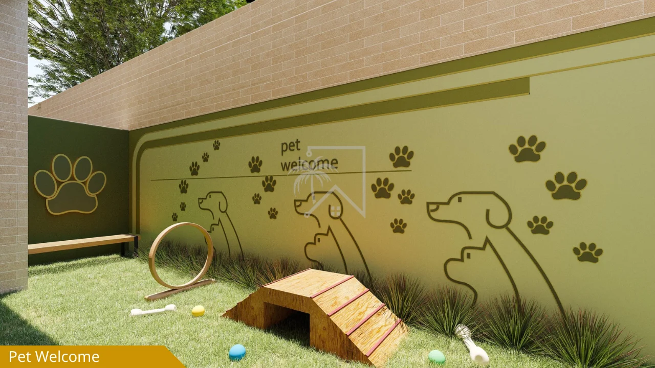 - Pavimento de lazer completo com piscina adulto e infantil, deck molhado, terraço gourmet, lounge gourmet e design, espaço games, coworking, brinquedoteca, miniquadra, playground, praça do jardim, academia, crossfit, salão de festas, salão de jogos e espaço pet e bike