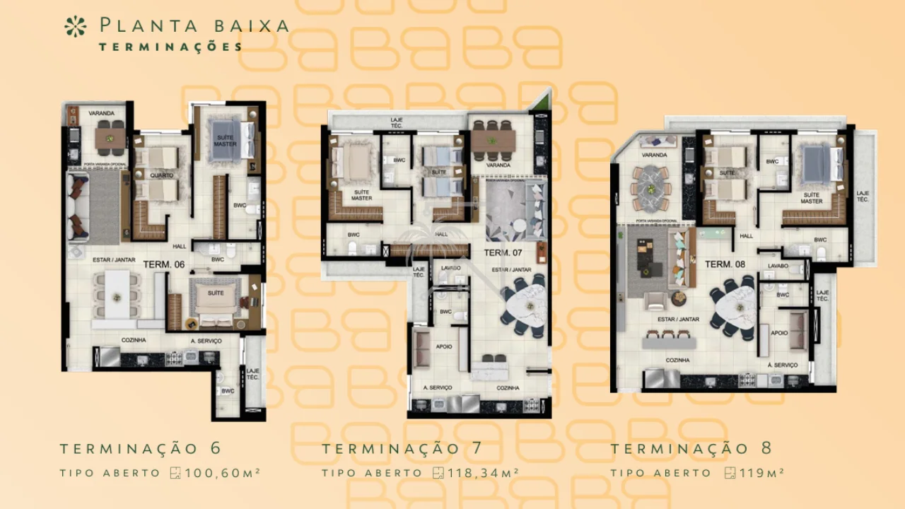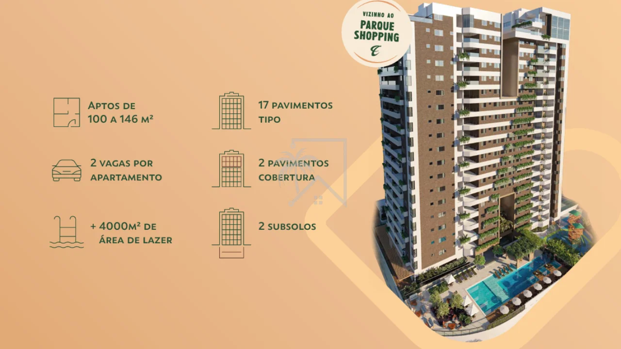 • Unidades: de 100 a 146 m² (tipologias de 2 suítes, 3 quartos com suíte reversível ou 3 suítes)