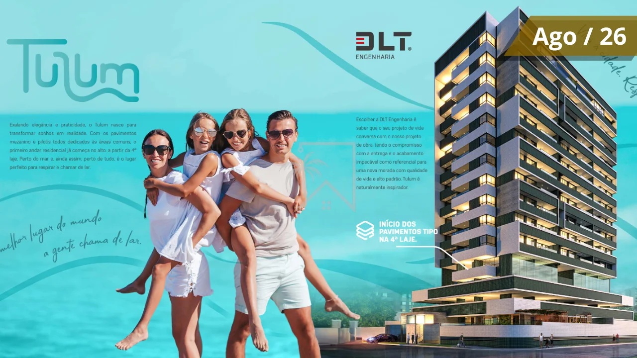 O Edifício Tulum é um empreendimento exclusivo da DLT Engenharia, localizado em uma das regiões mais valorizadas da capital alagoana. Com arquitetura contemporânea, plantas inteligentes e excelente padrão construtivo, o Edifício Tulum Maceió é ideal para quem busca morar bem ou investir com segurança.