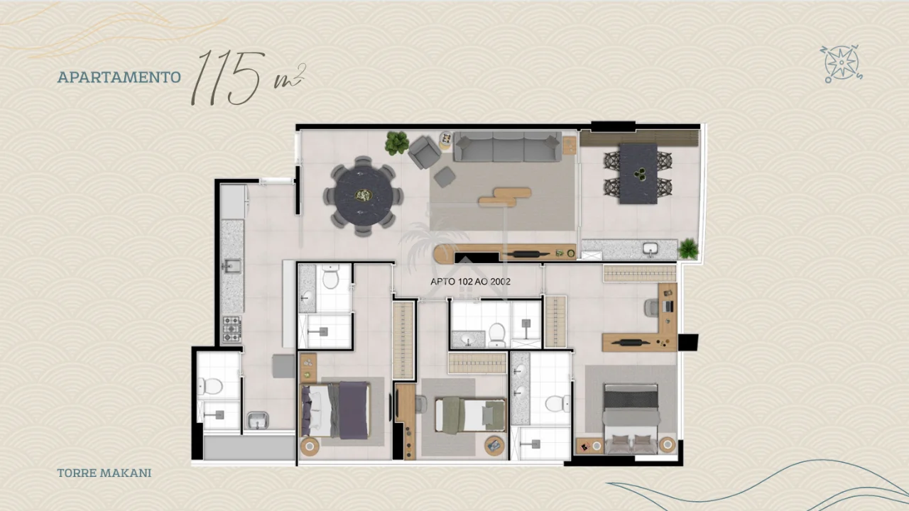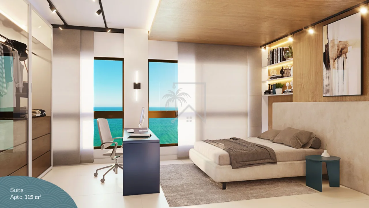 - 115 m² – 3 quartos (2 suítes), lavabo – 2 vagas