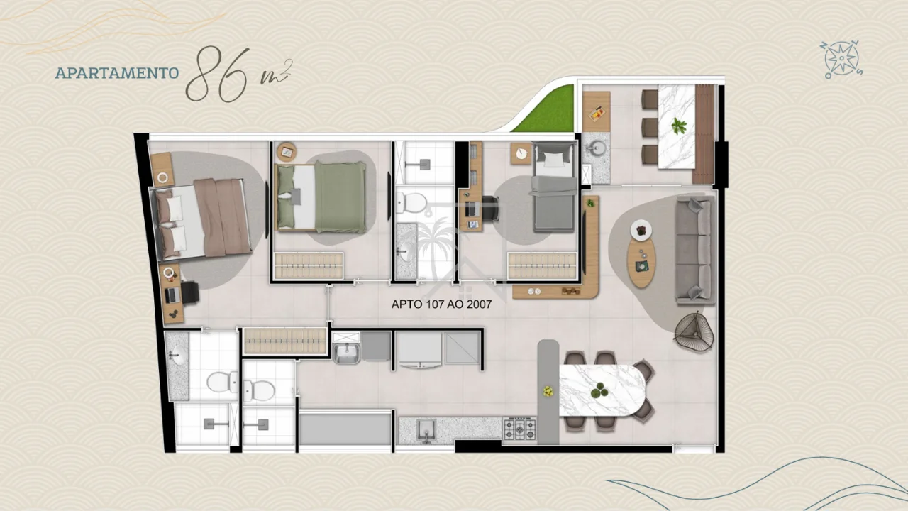 💰 A partir de R$ 849 mil - 86 m² – 3 quartos (1 suíte), 3 banheiros – até 2 vagas