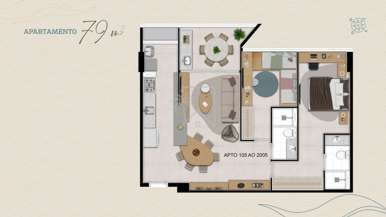 - 79 m² – 2 quartos (1 suíte), 2 banheiros, varanda gourmet – 1 vaga de garagem